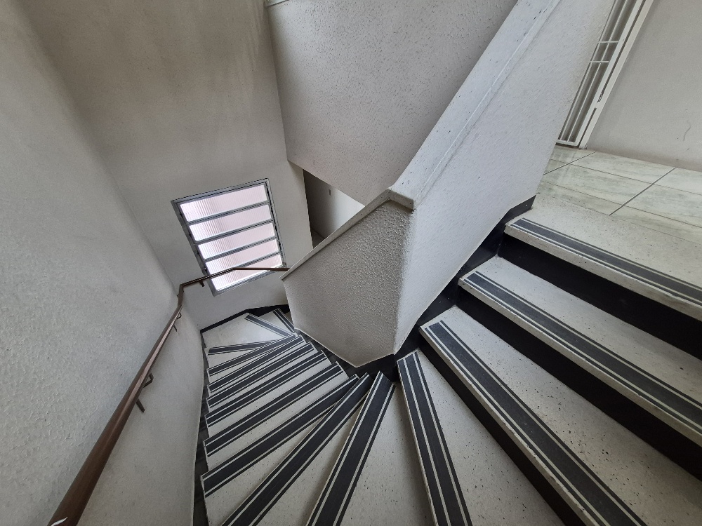 Edifício enxuto, sem elevador.
