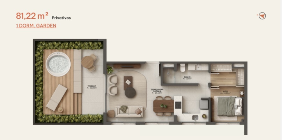 • 1DORM GARDEN com 81,22m² Privativos