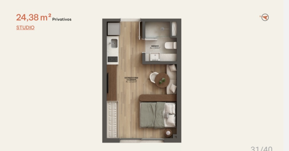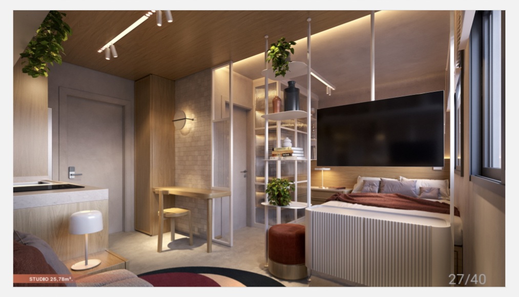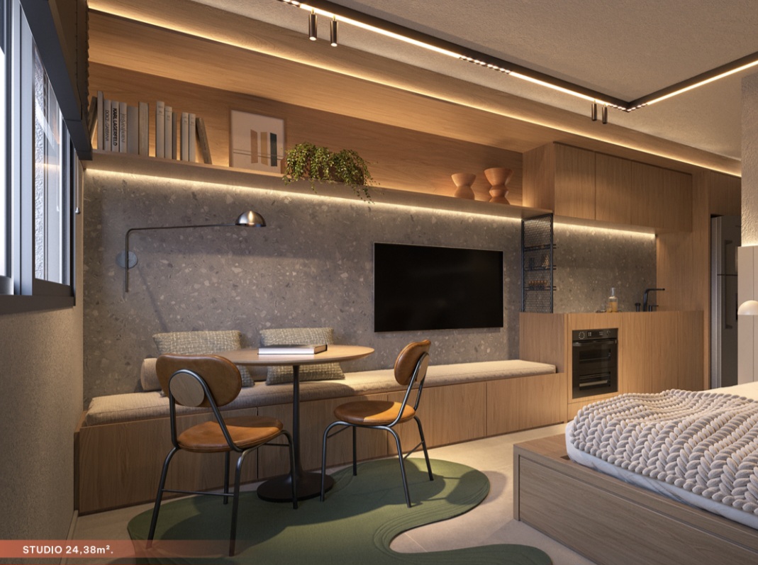 • STUDIOS de: 23,75 m² a 34,18 m² Privativos