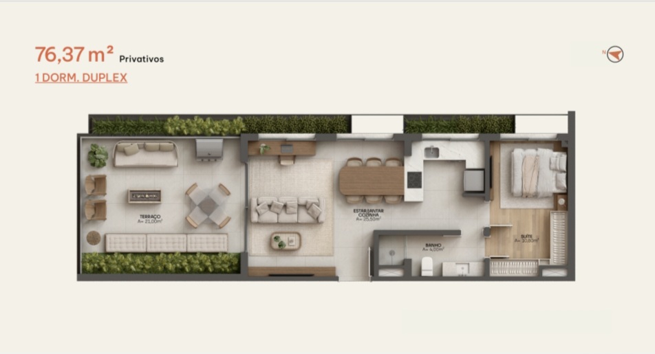• 1DORM. DUPLEX 76,37 m² Privativos