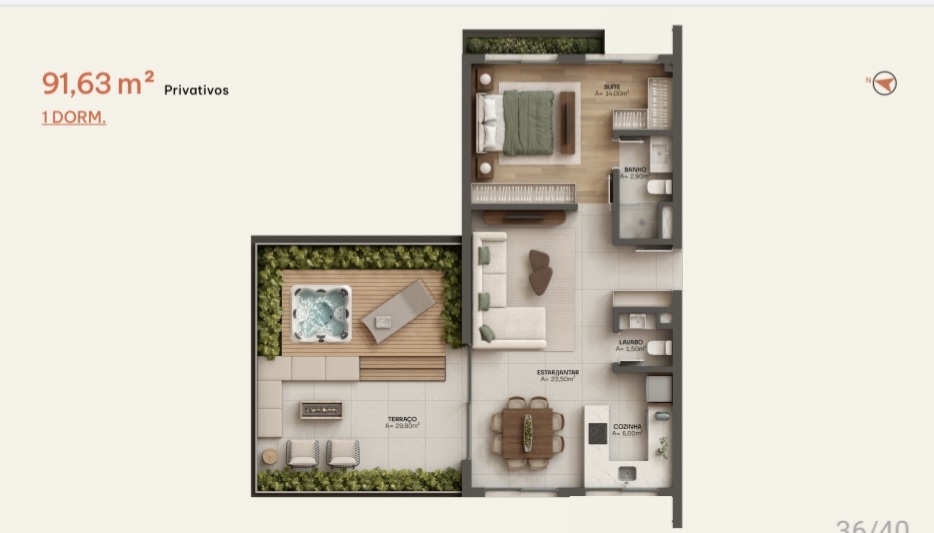 • 1DORM com 91,63 m² Privativos