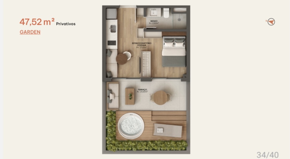 • STUDIO GARDEN - 47,52 m² Privativos + 20,60 de terraço
